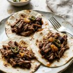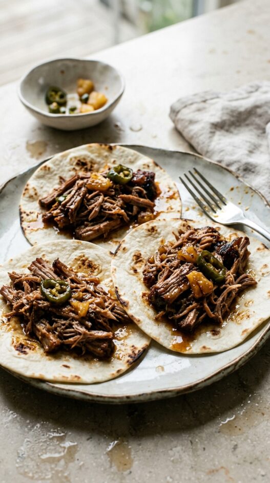 - Remove meat and shred. Serve with in tortillas with your preferred mango or pineapple salsa or fresh pico de gallo.
