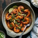 These shrimp are best served immediately while the glaze is still sticky and warm.