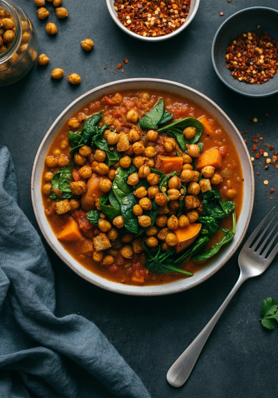 - Ladle the stew into bowls and garnish with cilantro and crispy chickpea croutons (if desired).