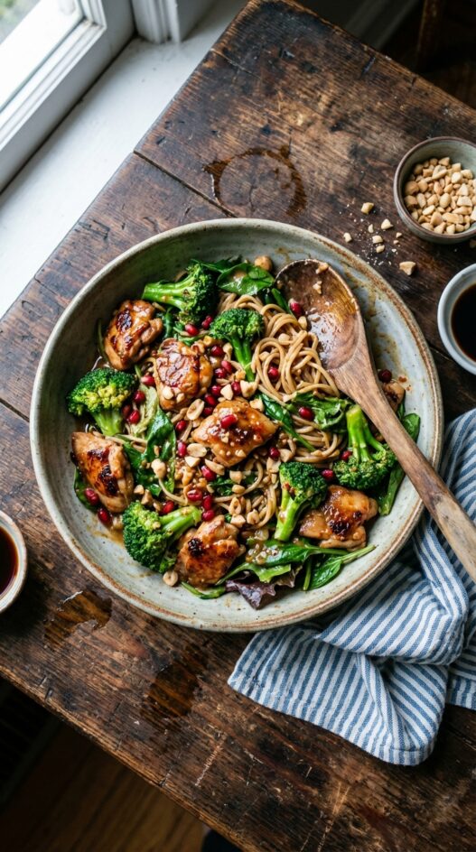 Quick, satisfying stir-fry with ramen noodles, crunchy peanuts, and pomegranate seeds. A flavorful weeknight dinner.