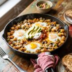 Hearty breakfast hash with potatoes, beans, and salsa. A fun twist on a classic!