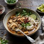 - To Serve: Place a couple of wads of noodles in a serving bowl, top with a generous amount of curry sauce, sprinkle all the condiments on top of the noodles, and finish with a squeeze of fresh lime juice.