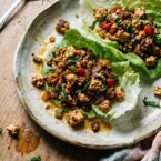 - Add two generous spoonfuls of the tofu mixture to each lettuce leaf.