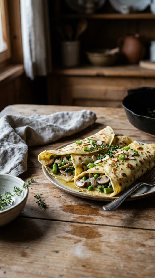 Filled with green, spring goodness, serve these vegan vegetable and potato crepes at your next brunch or dinner feast.