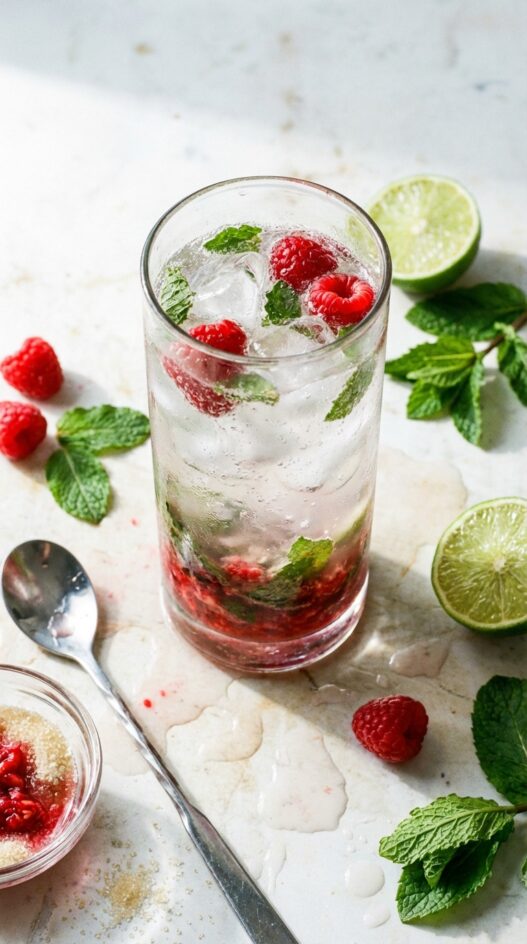 - Garnish with additional mint leaves and raspberries if desired.