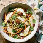 Sprouted Green Gram and Pear Salad with Spiced Pecans and Cranberries