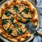 The squash gets it’s smoky flavor from chiles en adobo sauce, which also give it a good kick. I broiled the eggplant before putting it on the pizza to make sure they were soft, and threw on some raw kale which got nice and crispy in the hot wood burning oven. If you’re looking for a fun new fall-ish pizza to try – give this a shot! It was one of my favorites.