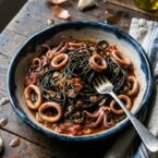 Dramatic squid ink pasta tossed with tender calamari in a simple, yet elegant tomato sauce. Perfect for a weeknight or a special occasion.