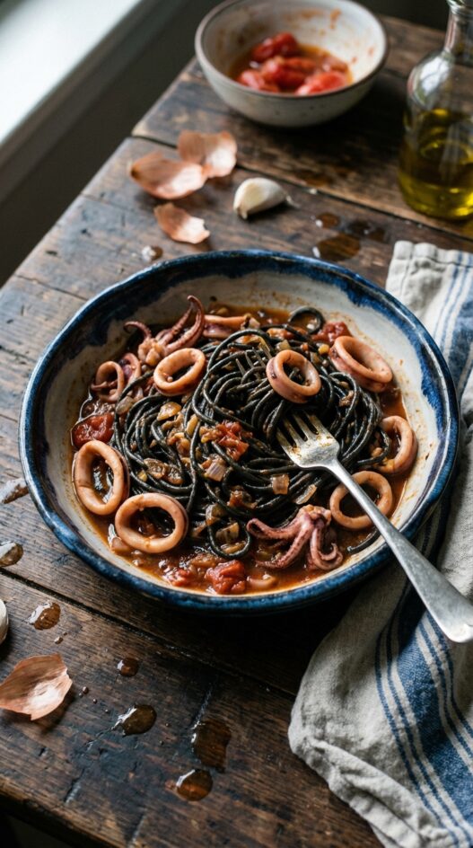 Spaghetti Al Nero Di Seppia: Squid Ink Calamari Pasta