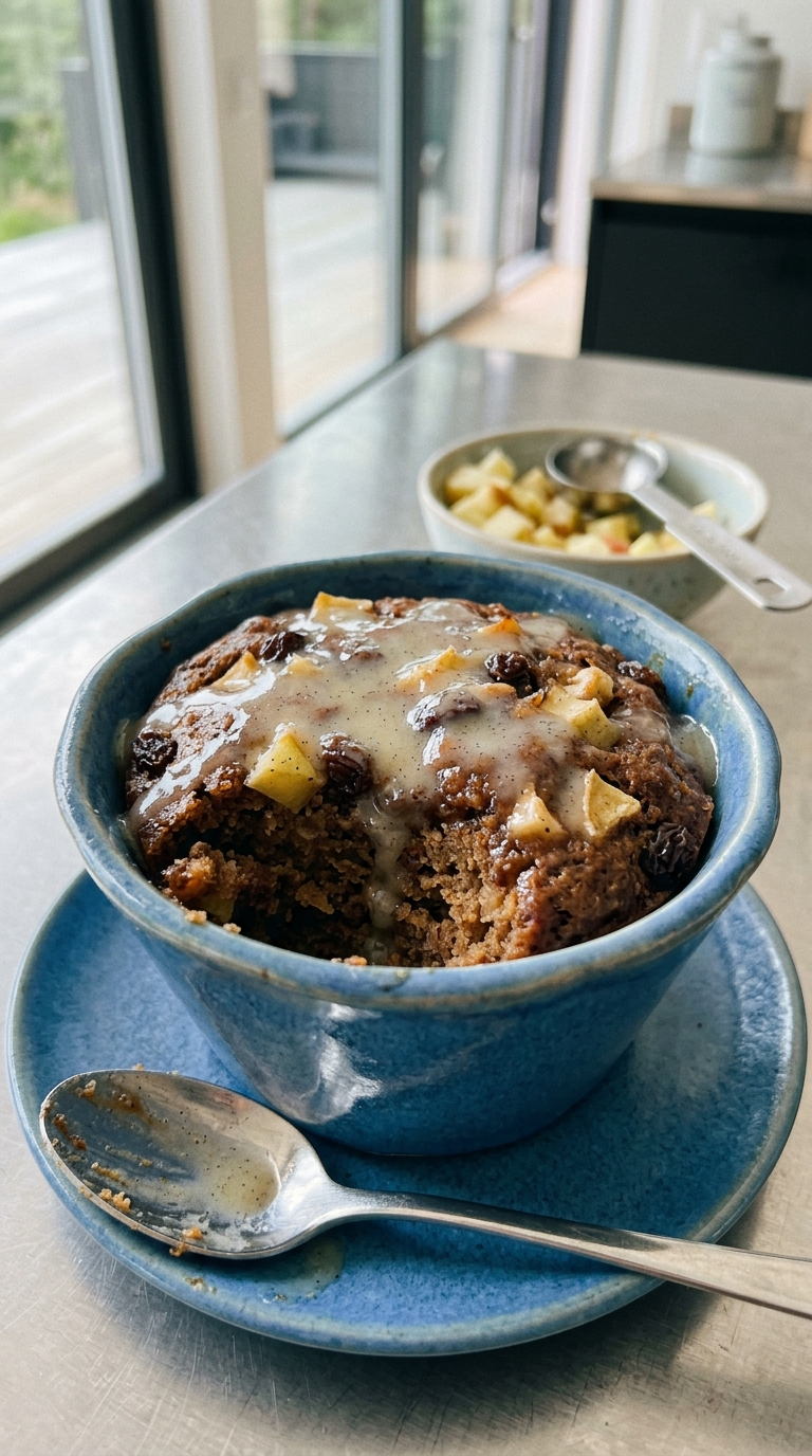 This steamed suet pudding engulfed with crisp apples, raisins, and warm Autumn spices is nothing short of a mouth-watering dessert with a light vanilla bean white sauce on top.