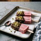 Popsicles are probably one of the easiest treats to make. They can be creamy or “icy”. They can be fruity or chocolaty. Either way, you don’t have to worry too much about having to churn it, or scrape it or use an ice cream maker. Just mix, pour and freeze! A refreshing, satisfying and healthy cold treat! We dipped our popsicles in dark chocolate and covered them with chopped pistachios to give them some crunch and make them extra decadent. Hope you enjoy them!!