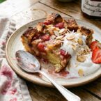 In celebration of our summer trip and Mother’s Day, I’m incorporating a French classic into a perfect breakfast for serving in bed to Mom (or in all honesty, to yourself). Strawberries are a sign that spring is in full force, so I used Bonne Maman Strawberry Preserves and juicy strawberries to flavor an irresistible bread pudding that’s sweet and fruity but not too sweet it leans more dessert. Although I won’t tell if you top it with ice cream and call it dessert. But the best part about this whole thing? It can be made the night before and baked in the morning for a fuss-free breakfast. While it’s baking, you can slice fruit, make coffee, arrange flowers, and write that Mother’s Day card you remembered to get…