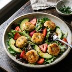 Sweet strawberries and creamy fried goat cheese meet fresh avocado in this vibrant salad. Tossed in a tangy shallot-honey vinaigrette, its a delightful mix of textures and tastes.