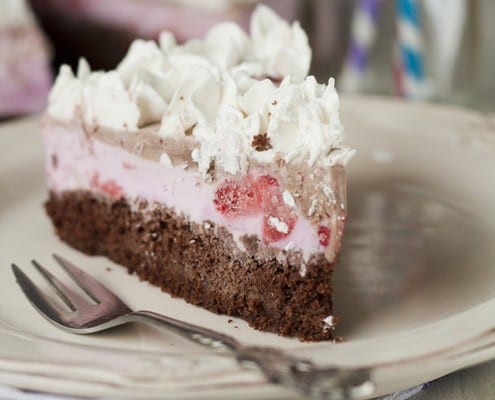 - Thinly slice strawberries. If you use raspberries, you don’t have to slice them. Combine them with honey and add to the strawberry ice cream. Spread this over sponge base. Spread chocolate ice cream on top. Decorate with whipped cream and freeze.