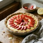 This elegant and delicious dessert is made with sun-kissed sweet strawberries beautifully arranged on top, over a lemony and velvety custard cream (crema pasticcera), and a buttery and crumbly cookie crust (pasta frolla) at the bottom.
