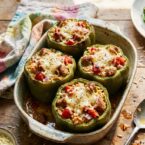 - Arrange peppers snugly in a baking pan or casserole dish. Stuff with the rice mixture and top with freshly ground black pepper.