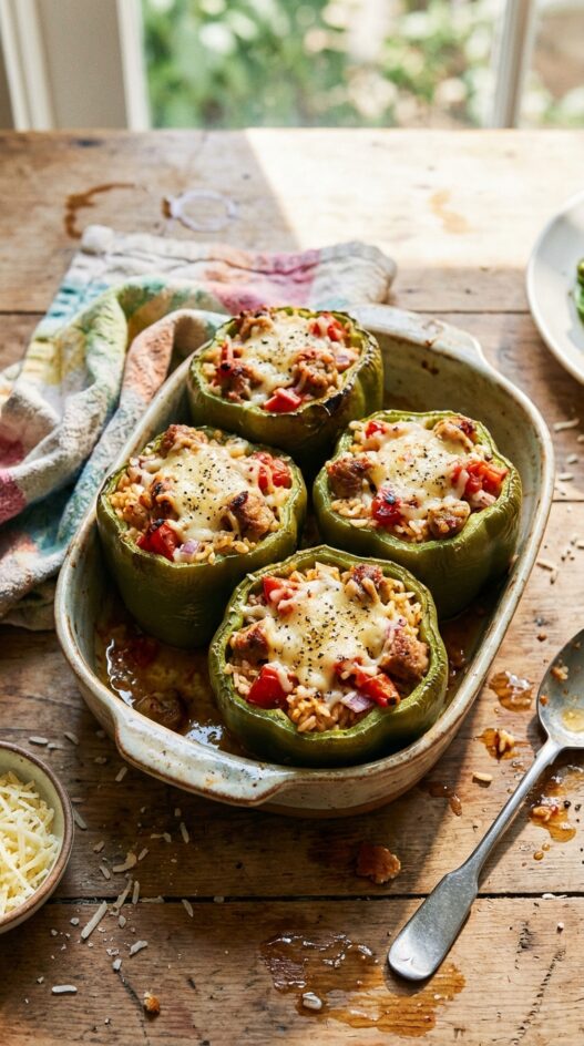 Blanching or roasting the peppers for a few minutes before stuffing helps them soften evenly in the oven. This prevents a situation where the filling is done but the pepper is still too firm.