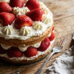 With beautiful layers and symmetry, this strawberry shortcake is made with fresh berries, a layer of sponge cake and sweet cream.