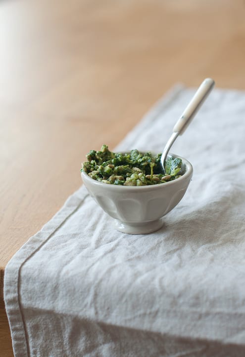 Few things taste of summer like a great, freshly made basil pesto. Every year, given the abundance of basil in the garden, I make a lot of it, and its grassy, garlicky and fragrant scent fills rooms and enhances appetites. Liking it quite powerful, I tend to use as much as I can in the days following the pesto-making session. Whatever seems too much ends up in the freezer, ready to be taken out and thrown on top of some pasta whenever I fancy some summer breeze out of season. I am usually quite faithful to the classic recipe of pesto alla genovese, which calls for Ligurian type basil, pine nuts, garlic, Ligurian extra virgin olive oil, and a mix of Parmigiano and pecorino cheese. However, sometimes I like to twist things a bit, maybe because I don’t have all the proper ingredients, or simply because I fancy a change –so, I go for different combinations of nuts and cheese. As for its usages, I enjoy it on pasta, especially linguine and trofie shape, but it works great also as a spread,on a slice of toasty bread, or as a salad dressing.