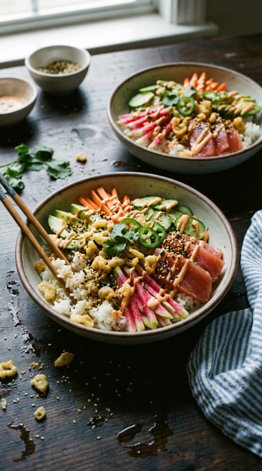 Fresh, vibrant sushi rice bowls packed with flavor and texture. Perfect for a quick and satisfying weeknight meal.