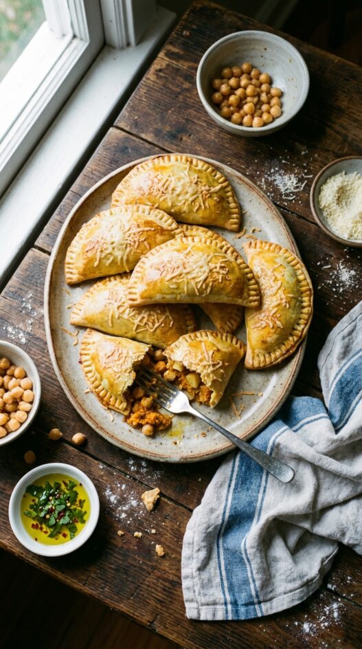 Hearty, hand-held empanadas perfect for fall. Sweet potatoes, apples, and chickpeas in a flaky crust.