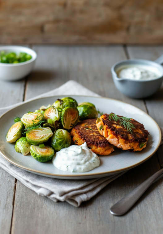 These Brussels sprouts should not be overshadowed by the delicious sweet potato salmon cakes because they’re probably the BEST Brussels you’ll ever eat. This is pretty much the only way I eat Brussels because they’re just so darn good. The balsamic vinegar and maple syrup combo is absolutely delicious!