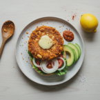 - To serve, place the patty on a bun, top with cheese, lettuce, tomatoes, onions, and fresh avocado.