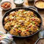 - Serve with sour cream, salsa, diced avocado, and queso dip.