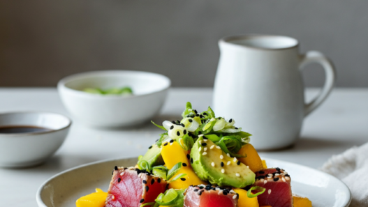 Ahi Belly with Cucumber Kimchee Salad – Chef Scott Hiraishi, Sam Choy’s Kai Lanai byMichelle M. Winner