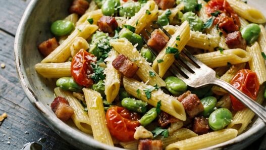 Fava, Pancetta, and Tomato Penne