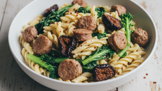 Broccoli Raab with Sausage, Black Mission Figs and Gluten-Free Penne