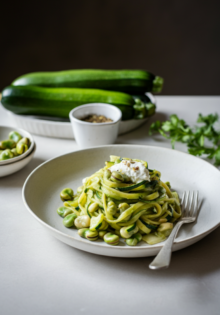 Zucchini Pasta with Fava Beans and Lemon Thyme Butter