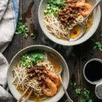 - In serving bowls, add noodles, bean sprouts, spring onions, and cilantro.