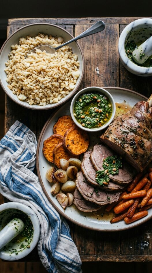 Tender Leg of Lamb Roast with Flavorful Mint Pesto