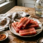 Sweet, boozy popsicles perfect for a hot day. A simple recipe with fresh fruit and tequila.