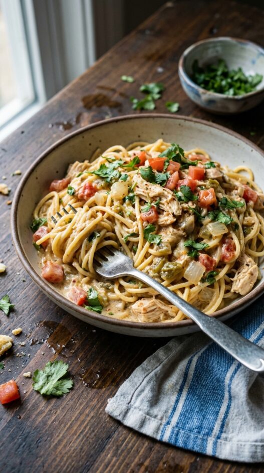 Tex Mex Roasted Chicken Spaghetti