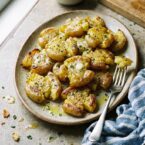 - Smash Potatoes: Gently smash each potato, using a fork or potato masher. Try to keep them in one piece. Let sit for about 10 minutes to dry out the surface.