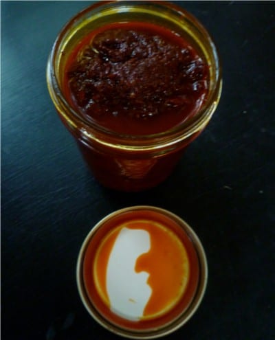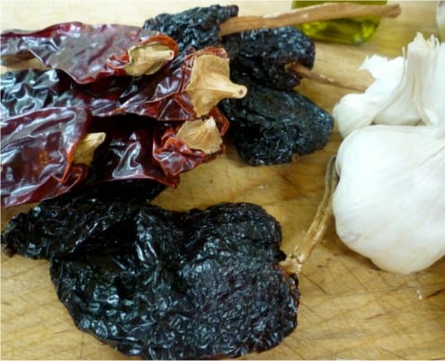 I used a mix of ancho (mild to medium) and california (medium to medium hot). I began by just pureeing the mild peppers with the oil and garlic, then added the hotter ones until the level of heat was what I wanted. Experiment with both peppers of different heat levels, as well as adding more garlic – both of which I will be playing with in future versions of this. Just remember – it is easier to add more than to take it out.