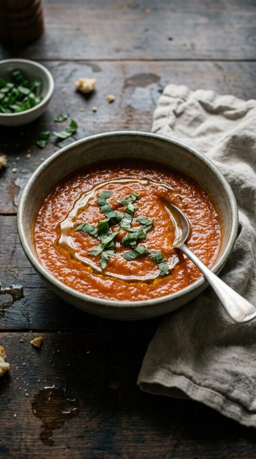 Indulge in a bowl of pure, plant-based heaven with this luscious vegan tomato soup! Rich, thick, and oh-so creamy, it’s packed with wholesome goodness, and a secret ingredient – cauliflower – makes it velvety smooth without a drop of dairy.