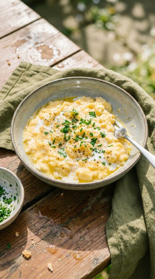 These scrambled eggs are unbelievably creamy and luxurious. Perfect for a weekend brunch or a special breakfast.