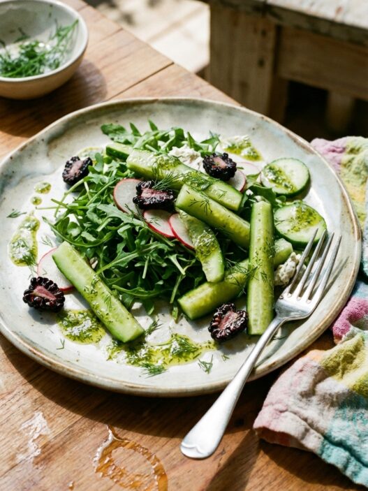 Salads – an element that most Indian meals are devoid of. Add an individual sized seasonal salad, like this squash & cucumber ‘spaghetti’ w/ pickled radish & cilantro lime dressing, to your buffet table. Not only is it uber simple to put together, but it will also add a vibrant crunch to your meal. Oh, and chill your dishes before serving – it will keep the crunch that much longer!