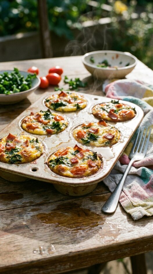 Mini quiches packed with savory prosciutto, juicy tomatoes, and wilted kale. Perfect for brunch or a light dinner.