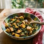 Traditional Bengali Summer Eggplant with Fried Neem Leaves