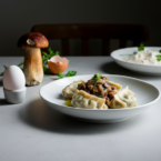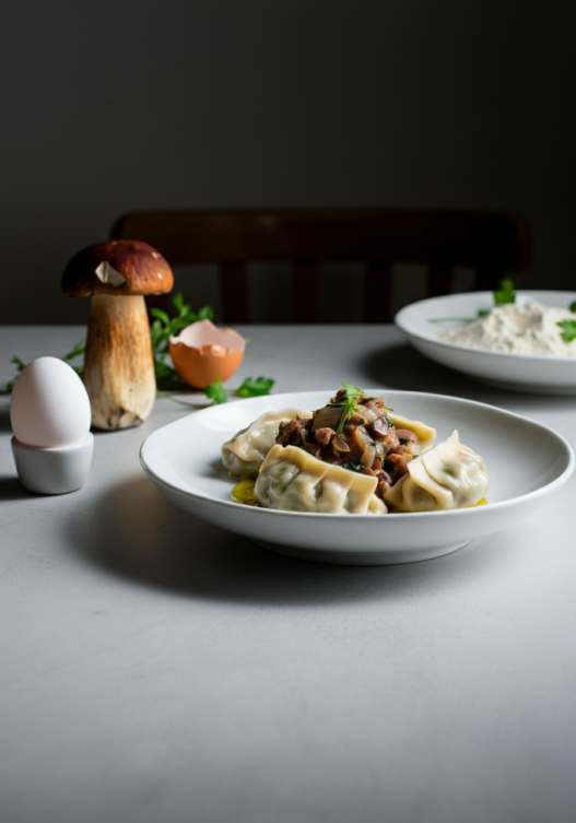 Rich duck dumplings, slow-cooked to perfection, are bathed in a luxurious boletus mushroom sauce. A truly special dish.