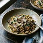 Elegant yet easy weeknight pasta. Rich truffle and mushroom flavors elevate simple fettuccine.