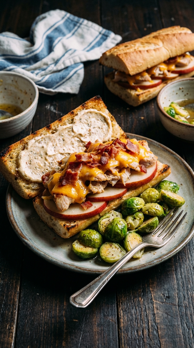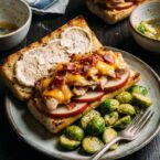 Crispy bacon, sweet pears, and tangy pickled brussels sprouts make this leftover turkey sandwich a winner. Perfect for game day!