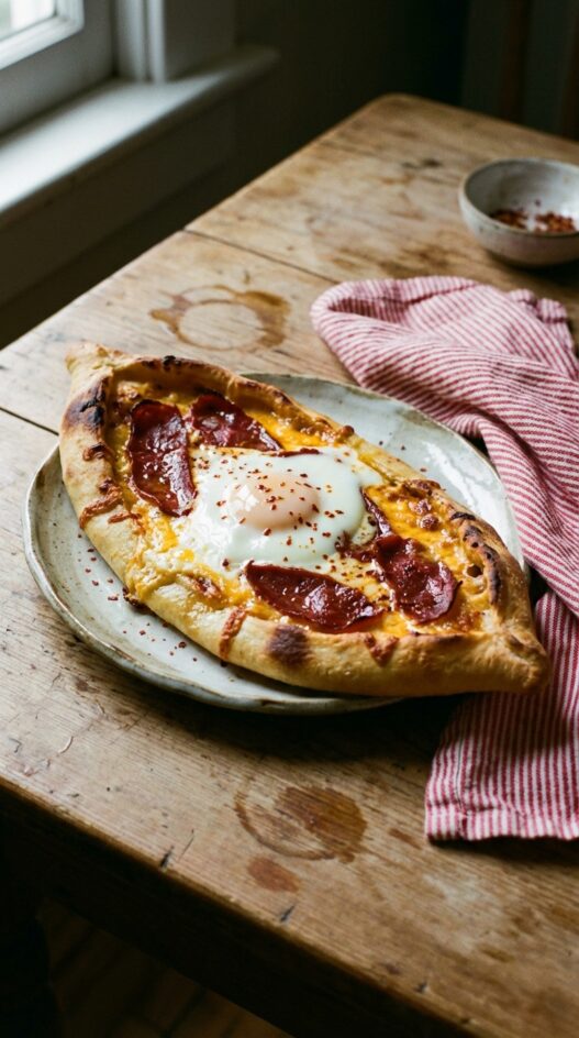 Flaky pide filled with savory pastrami, cheese, and a perfectly baked egg. A Turkish brunch masterpiece!