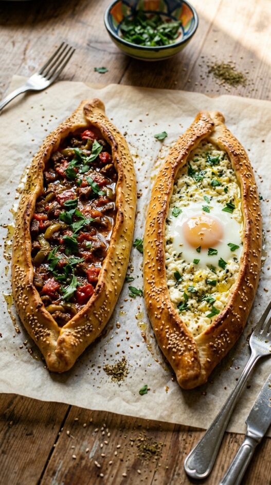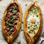 Turkish pide, often hailed as pizza, is made two ways with different fillings. Learn about the favorite street food and try it with this recipe no matter where you are.