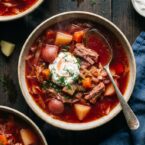 Let this lighter soup be your go-to meal as you enter into spring. Loaded with beets and potatoes, this borscht is the perfect in between on a cool spring day.