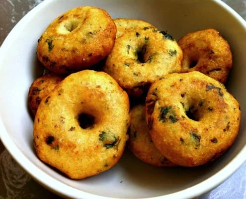 These savory fried lentil dumplings, known as vada, are a delicious South Indian starter, perfect with yogurt or chutney.